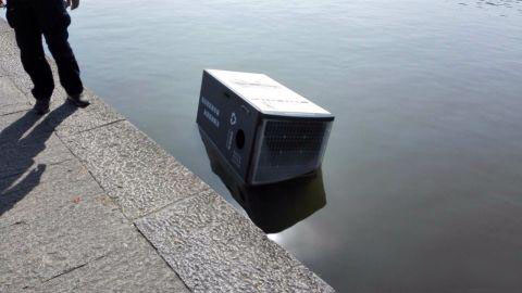 原來,趙某推進西湖的垃圾桶,是去年年初投入使用的太陽能垃圾桶,在西湖邊只有十臺。警方從垃圾桶生產廠家了解到,這款垃圾桶售價為29800元,目前還需要物價局的工作人員進行一次價格鑒定。趙某因為自己的不理智行為,目前已被警方刑事拘留。